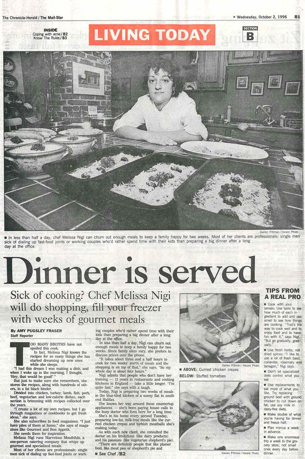 The Chronicle-Herald Halifax, Nova Scotia Wednesday October 2, 1996 "Dinner is served" |