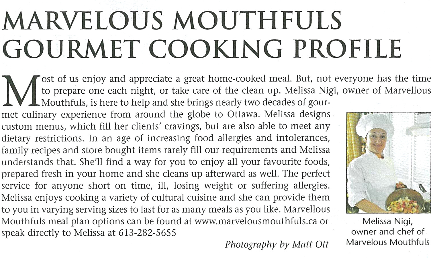 Snap Ottawa, Ontario 2009 "Marvelous Mouthfuls Gourmet Cooking Profile" |