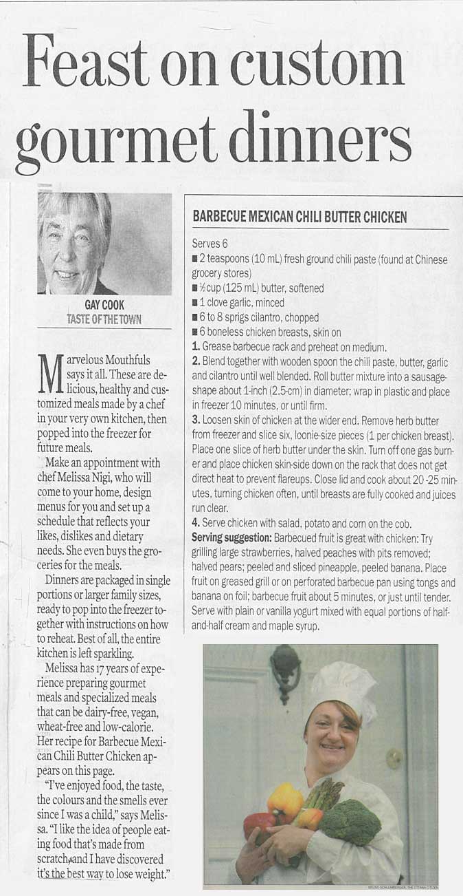 The Ottawa Citizen Ottawa, Ontario Wednesday, June 14, 2006 "Feast on Gourmet Custom Dinners" |