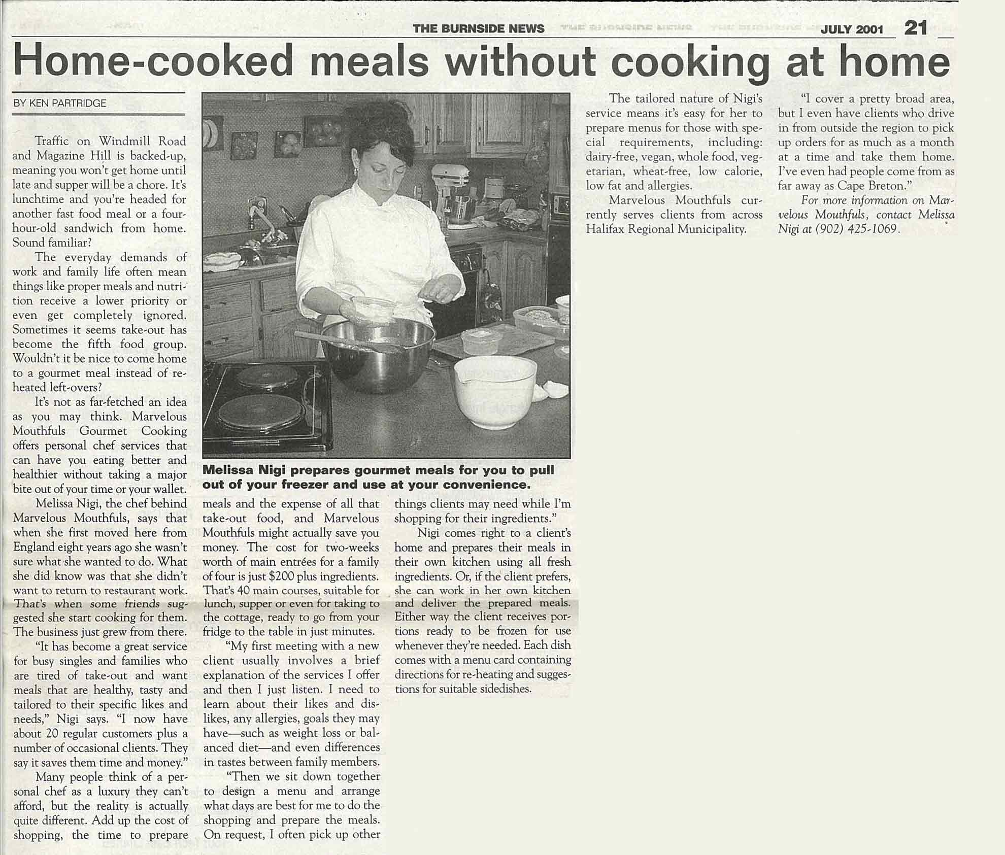 The Burnside News Halifax, Nova Scotia July 2001 "Home-cooked meals without cooking at home" |